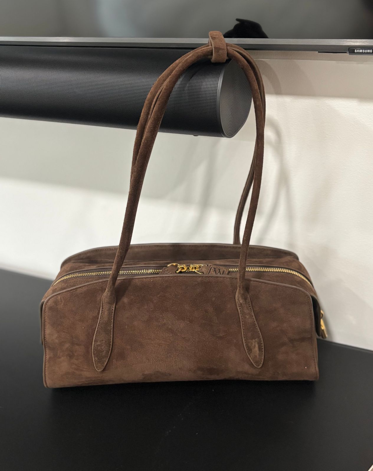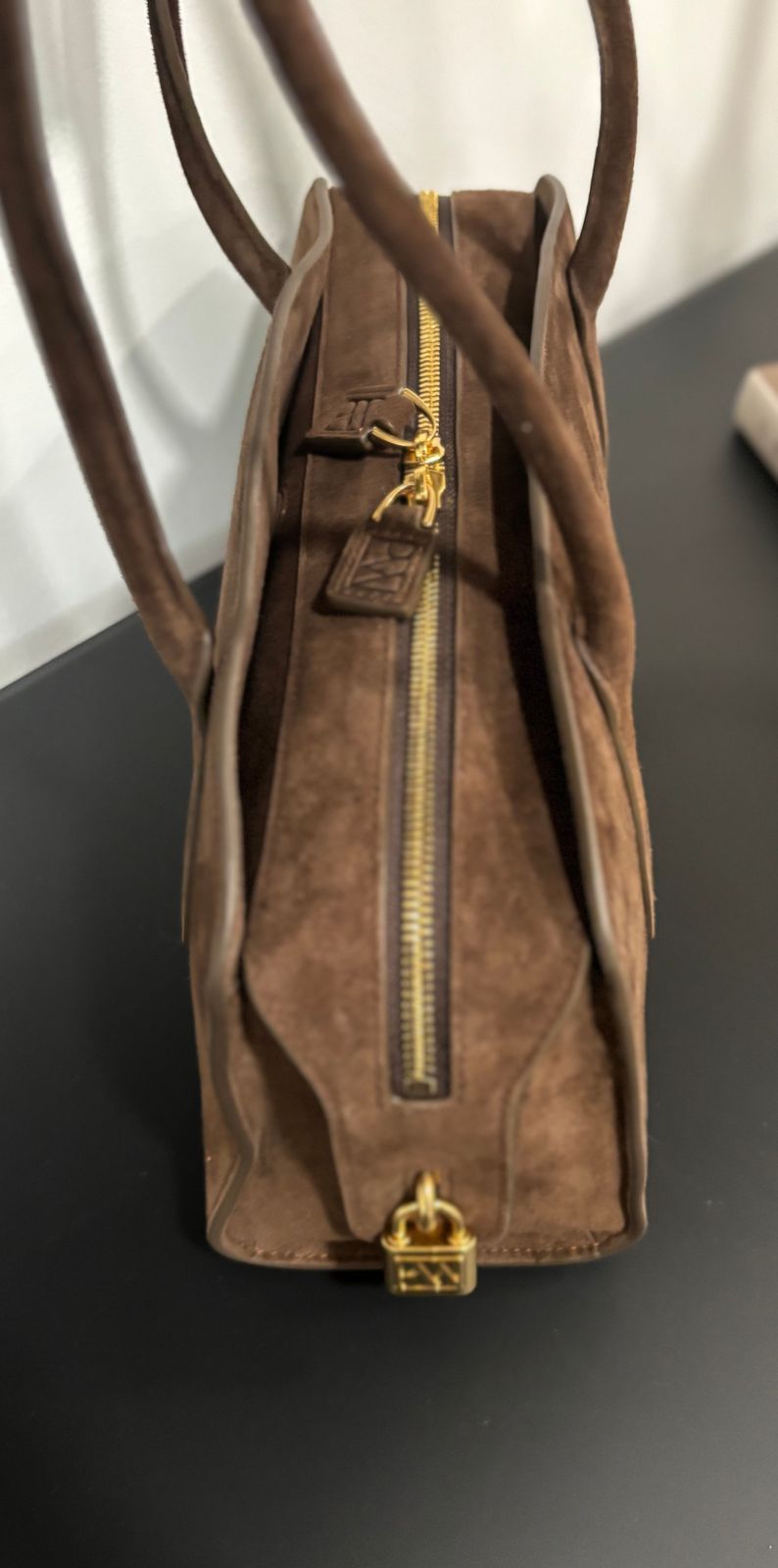 I chose this bag in the chocolate brown colour, although the other colours look lovely. Must say it was difficult to choose. This is my first suede, east west bag. I love the design, proportions & sleek silhouette, which gives this bag no fuss elegance. Size is perfect, not too small or too big, just perfect. Excellent materials & quality craftsmanship but at a reasonable price. The suede is buttery soft & the chocolate brown colour is rich & is the perfect shade to match my wardrobe. I can see this being well used & well loved.