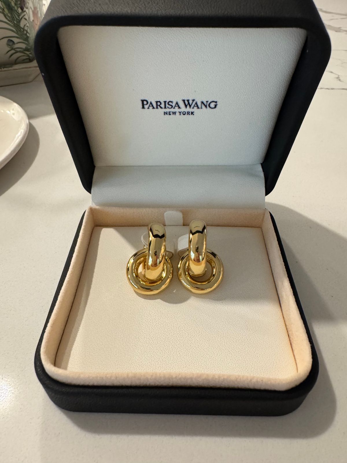 I just received these earrings and I’m so impressed. First, they arrived in a very nice box, appropriate for gift giving. The earring size hits a sweet spot, not too delicate and not too large. They’re classic and I love that the hoops can be worn alone or with the drop. These will be terrific for travel. This was my first Parisa Wang purchase and it won’t be my last.