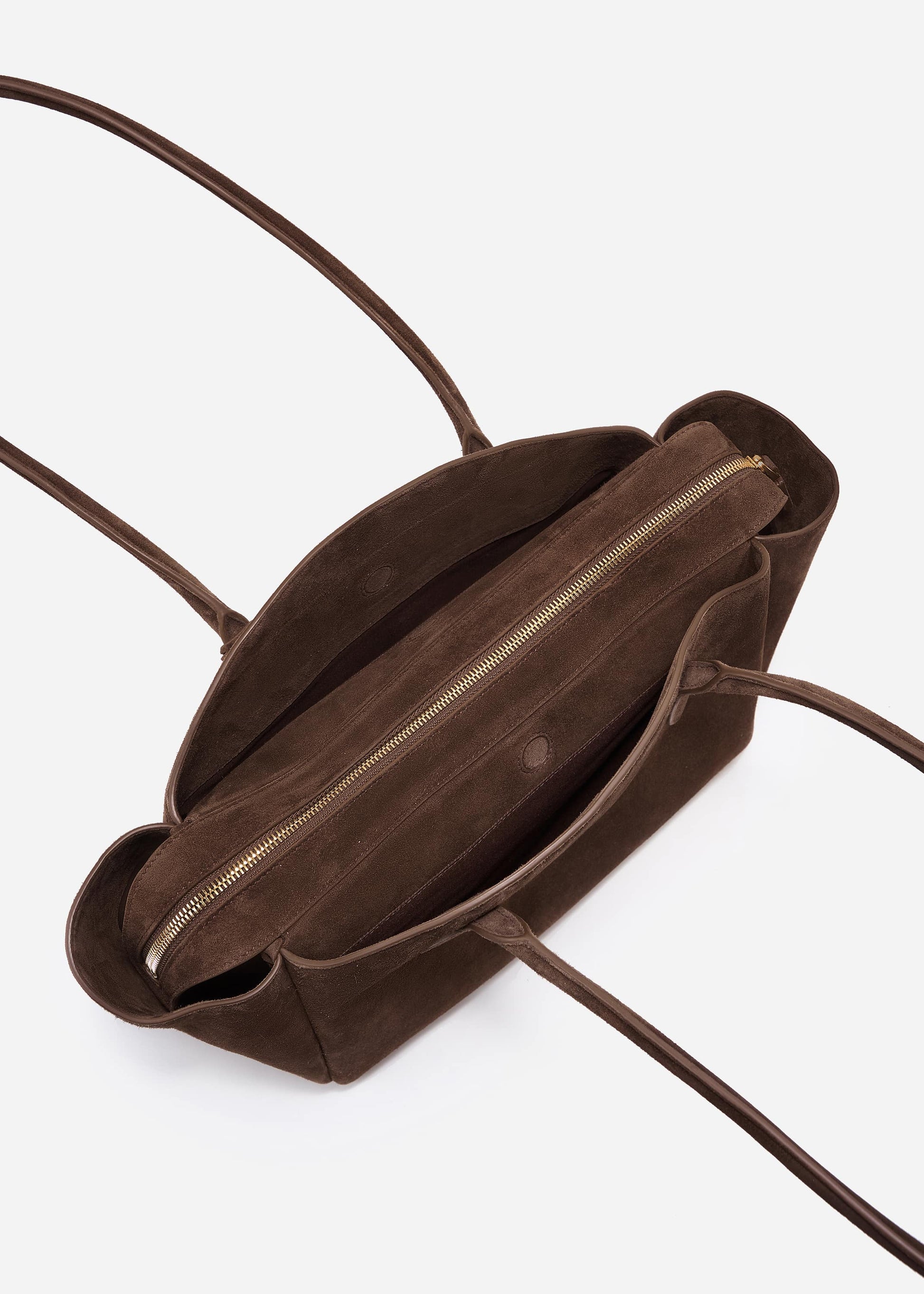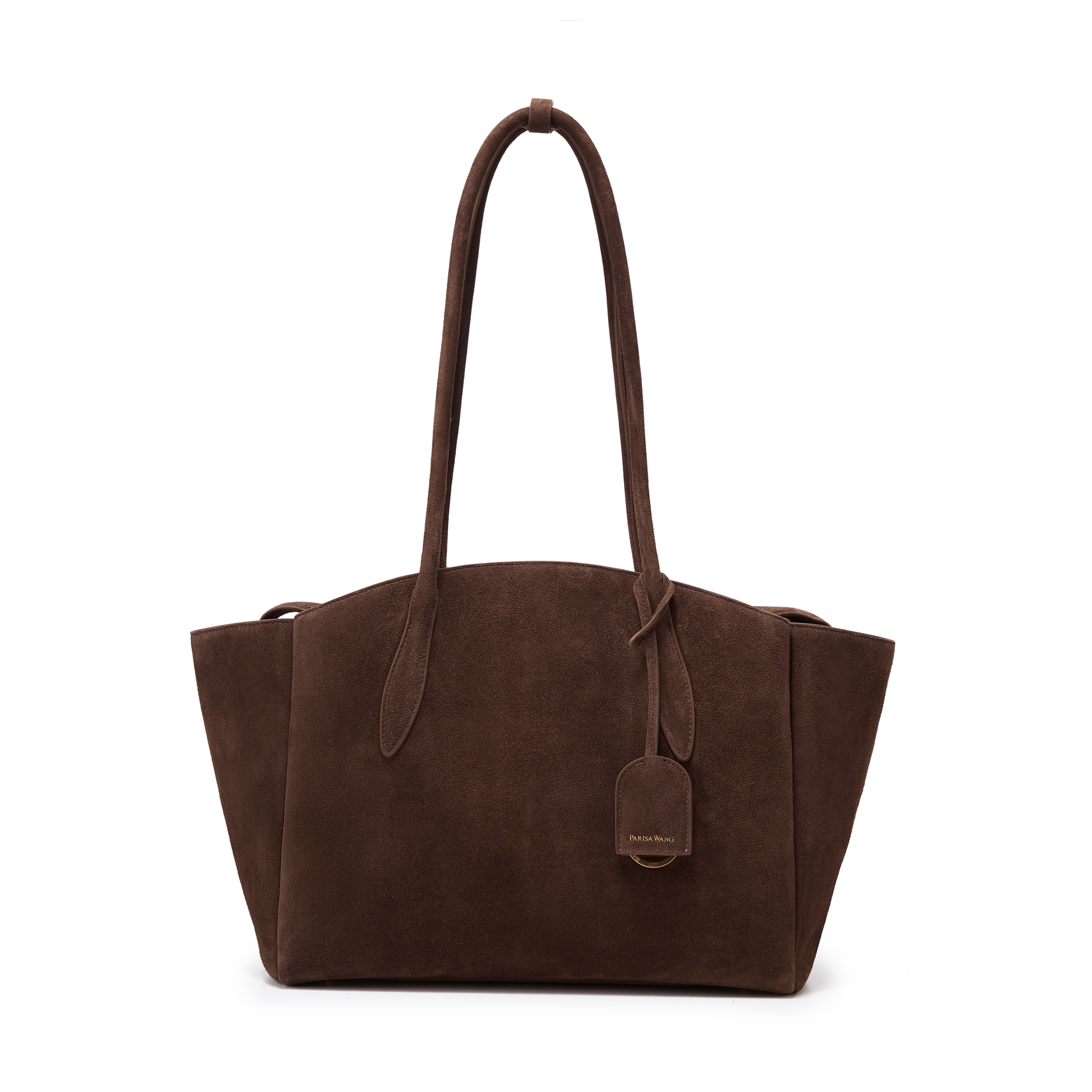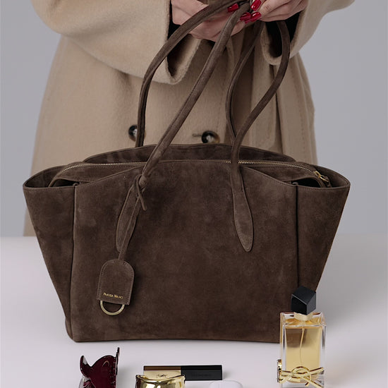 The Gabrielle East-West Tote distills quiet luxury into everyday form. Crafted in British full-grain goatskin suede, it carries with ease while keeping shape—softly structured, lightweight, and made to move. Building on our beloved Gabrielle lineage, it features signature front and back exterior compartments secured with concealed magnets, plus a zippered main compartment for added peace of mind. Designed to work as beautifully as it looks, it comfortably fits a 14" laptop (12.3" × 8.7") alongside daily essentials—uniting refined craftsmanship with practical functionality.