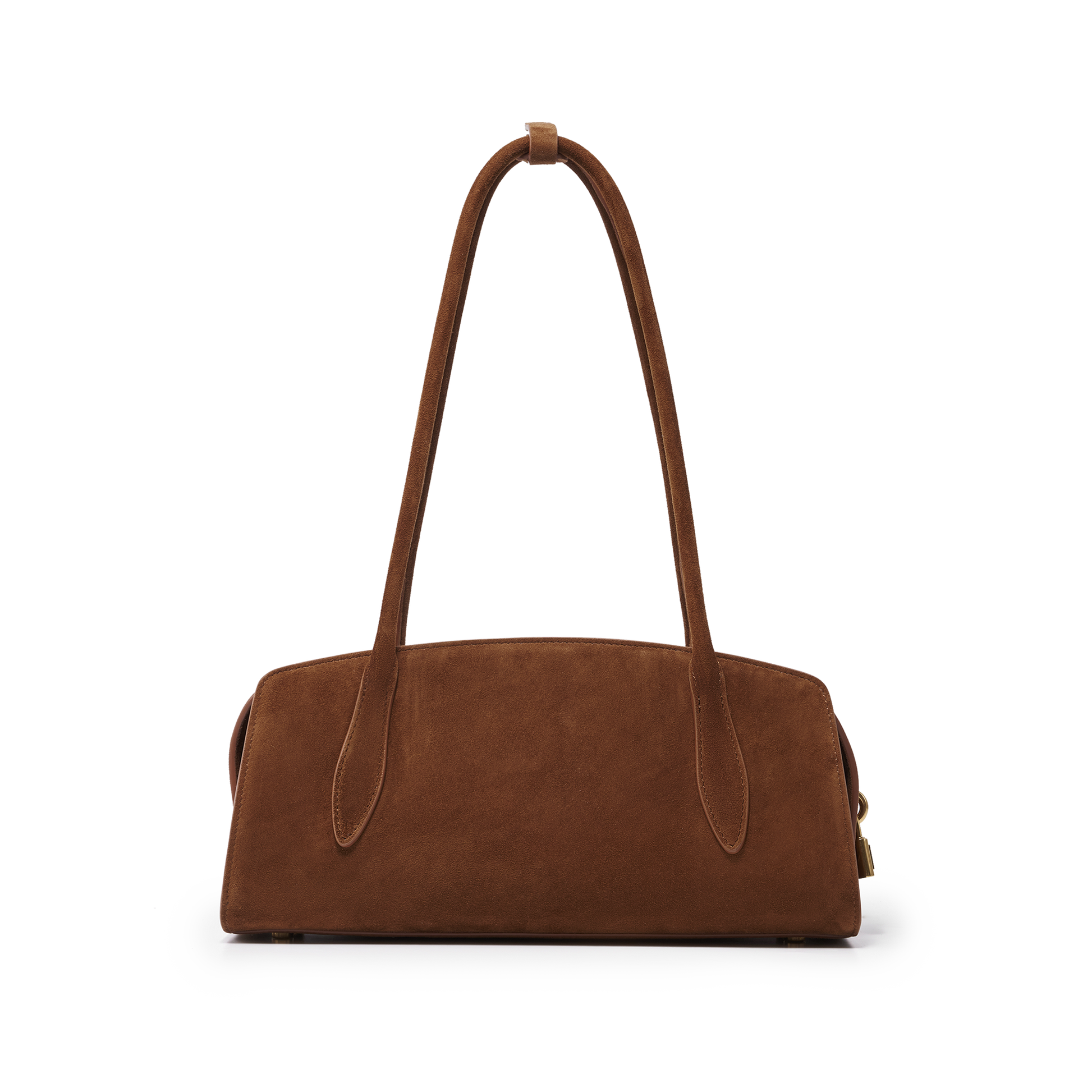 The Gabrielle Small East-West Shoulder Bag distills the signature design of its larger counterpart into an expertly proportioned silhouette. Constructed from LWG-certified British goatskin suede, this compact style maintains the functional sophistication of the original, including strategically placed exterior slip pockets for convenient access. Perfectly scaled for daily essentials, it delivers refined elegance without compromise.